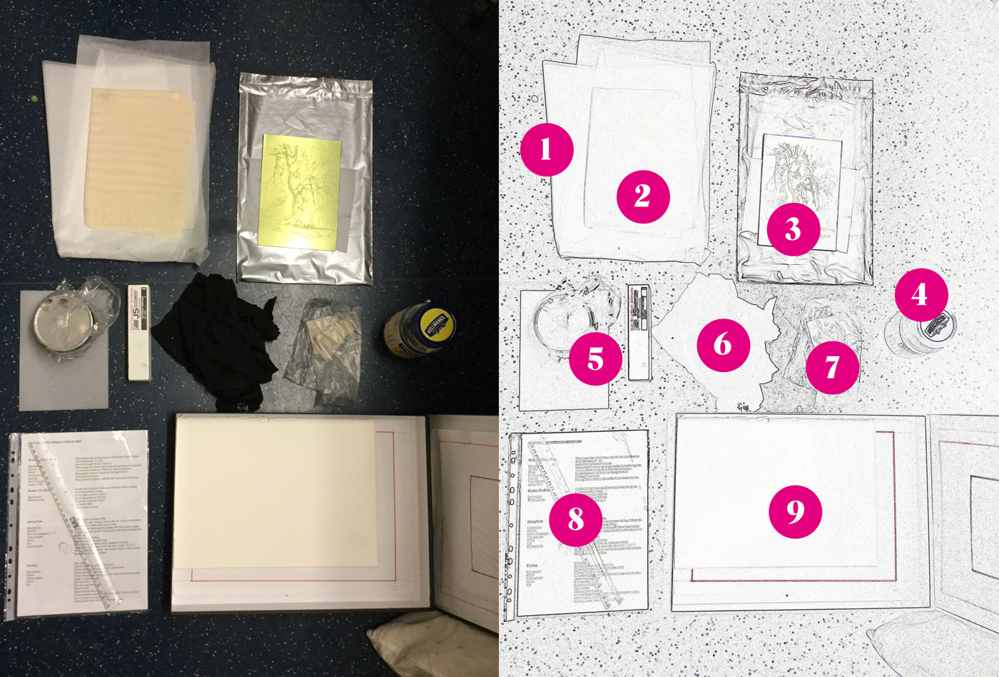 On a rare day off from teaching I enrolled on a one day course at The London Print Studio where I was taught the process under the marvellous tutelage of printmaker and technician Valentina Biga. My coincidental knowledge of making bitmapped images has been invaluable and using the photopolymer process is perfect for my drawings.